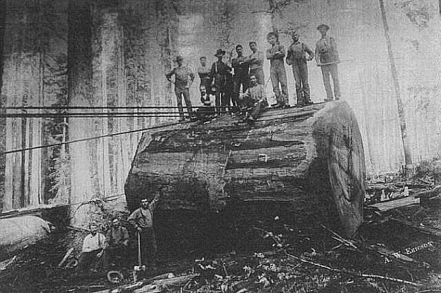 Antes de que se inventaran las sierras de cadena, en Canadá y EEUU, hace unos 125 años....existían árboles gigantescos, cuya poda se realizaba a mano.