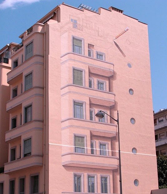 Mola el efecto que consigue la pintura: parece que las ventanas de esa pared están conectadas por una escalera… y que son puertas…