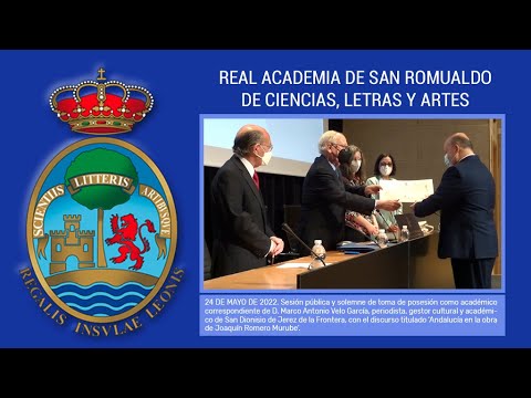 La Real Academia de San Romualdo de Ciencias, Letras y Artes celebró el pasado 24 de mayo junta pública y solemne en la que tomó posesión de una plaza, como académico correspondiente, D. Marco Antonio Velo García, periodista, gestor cultural y miembro de la Academia de San Dionisio de Jerez de la Frontera. El discurso de Velo García llevó por título 'Andalucía en la obra de Joaquín Romero Murube'.