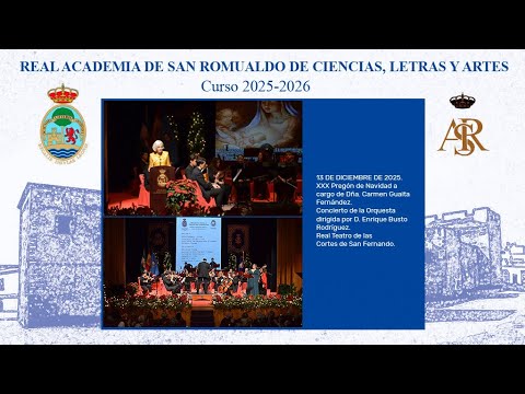 La Real Academia de San Romualdo quiere desearles a todas las personas que siguen sus actos a través de esta web oficial una feliz Navidad y un próspero año 2026, agradeciéndoles su fidelidad e invitándolas a continuar participando de su programa de eventos bien presencialmente o a través de este espacio en internet.