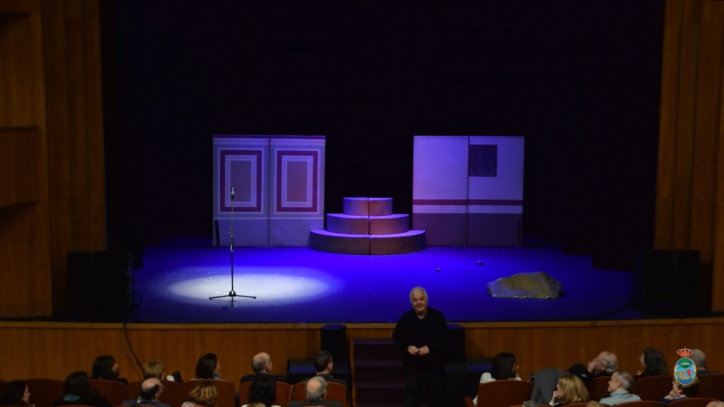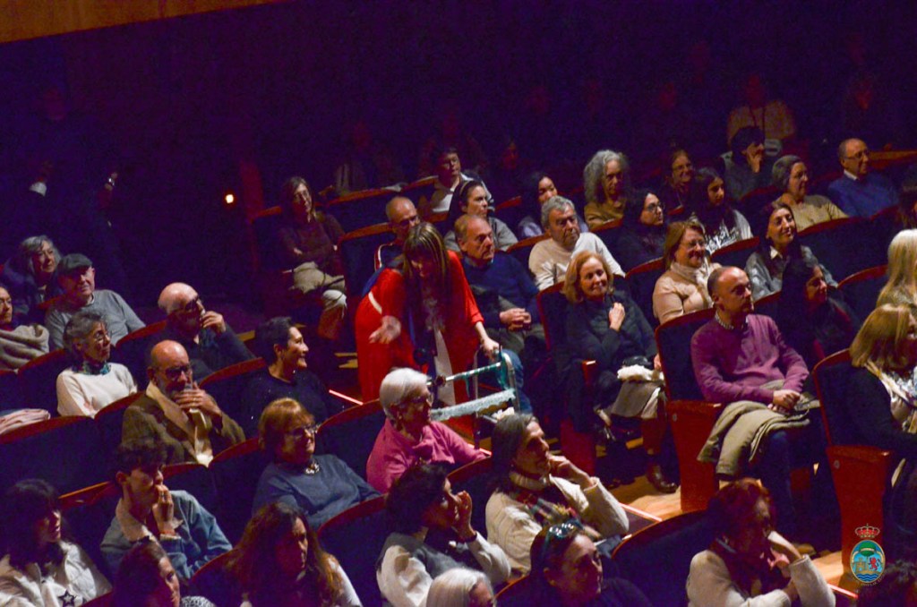 La Sra. Martínez Rodríguez de Lema, a modo de preludio de la representación, realizó una semblanza tanto del grupo teatral Balbo como del autor de la obra. Como «proyecto pedagógico de primer orden» destinado a la enseñanza del latín y la cultura clásica definió la presentadora a la compañía portuense. Resaltó los hitos del grupo, incluyendo sus tres Premios Nacionales de Teatro y su capacidad para llenar teatros, lo que demuestra a su juicio que la vigencia de la cultura clásica. Respecto a Aristófanes y su obra, la académica de San Romualdo lo describió como un hombre «conservador, reaccionario y nostálgico», que detestaba la modernidad de los sofistas y la demagogia de los políticos jóvenes, y a pesar de su conservadurismo, aseveró que Aristófanes ejerció la parresía (libertad de expresión extrema), utilizando el escenario como un contrapeso al poder para abogar por la paz en tiempos de guerra. Rodríguez de Lema también explicó que, en una sociedad dominada por la megalomanía, el legado de Aristófanes nos recuerda que «la risa es la forma más seria de crítica» y que el humor es un arma indispensable para la salud de cualquier democracia. La presentación sirvió como preámbulo para una obra que, bajo la dirección de Chema de la Flor, mantiene la estructura clásica (con licencias dialectales andaluzas) para buscar la reflexión a través de la carcajada, como así explicó D. Emilio Flor en una intervención de varios minutos dirigida al público tras las palabras de Dña. María Elena Martínez Rodríguez de Lema. Así, y de modo distendido y desde su asiento, se giró hacia el público para detallar que la obra, en su adaptación, presenta varias licencias. Explicó algunas decisiones creativas de la puesta en escena dirigida por Chema de la Flor: como el uso del dialecto: Como en la Antigua Grecia existían diversos dialectos, el grupo se tomó la licencia de introducir el acento andaluz y otros originarios de diferentes países o comunidades autónomas, defendiendo que la comedia debe ser fresca y cercana al público que la recibe. Tras destacar la labor realizada por los jóvenes del grupo y mostrar su gratitud hacia la Academia y el Ayuntamiento de San Fernando personalizando especialmente en Dña. Pepa Pacheco como concejala de Cultura, la obra teatral se representó entre las reflexiones sobre el papel de la mujer y las diatribas del poder que quiso destacar Aristófanes en su obra y las carcajadas con algunas de las situaciones hilarantes, incluso escatológicas, de una comedia avanzada a su tiempo.