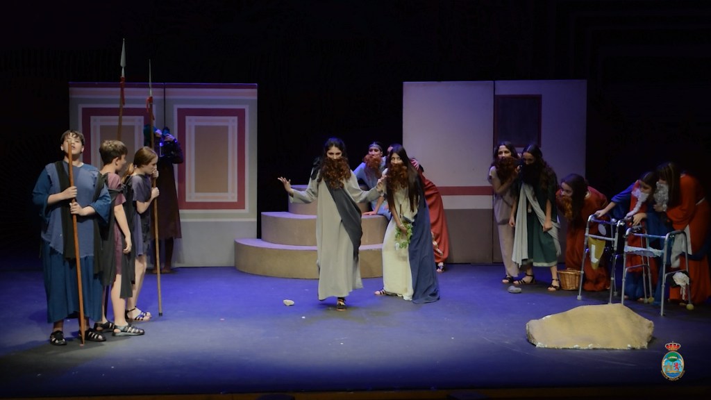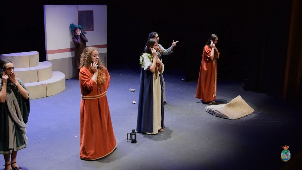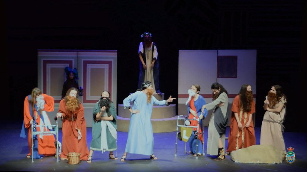 Escrita hacia el año 392 a. C., «Asamblea de mujeres» es una comedia mordaz, irreverente y a la vez reivindicativa y visionaria de Aristófanes. Las mujeres de Atenas, hartas de la mala gestión de los hombres en la política, deciden tomar el control. Se cuelan en la Asamblea al amanecer, antes que los hombres, y votan por mayoría entregar todo el poder de la ciudad a las mujeres. Lideradas por Praxágora, se disfrazan con barbas postizas y mantos masculinos. Lo que reivindican y lo que sucede posteriormente tiene mucho que ver con el mundo contemporáneo aunque hayan transcurrido siglos. Pero para conocerlo mejor, la Academia le invita a visionar el vídeo completo de la representación que organizó esta institución que agradece además la colaboración del Ayuntamiento de San Fernando a la hora de disfrutar del privilegio que supone poder celebrar este acto en el Real Teatro de las Cortes.