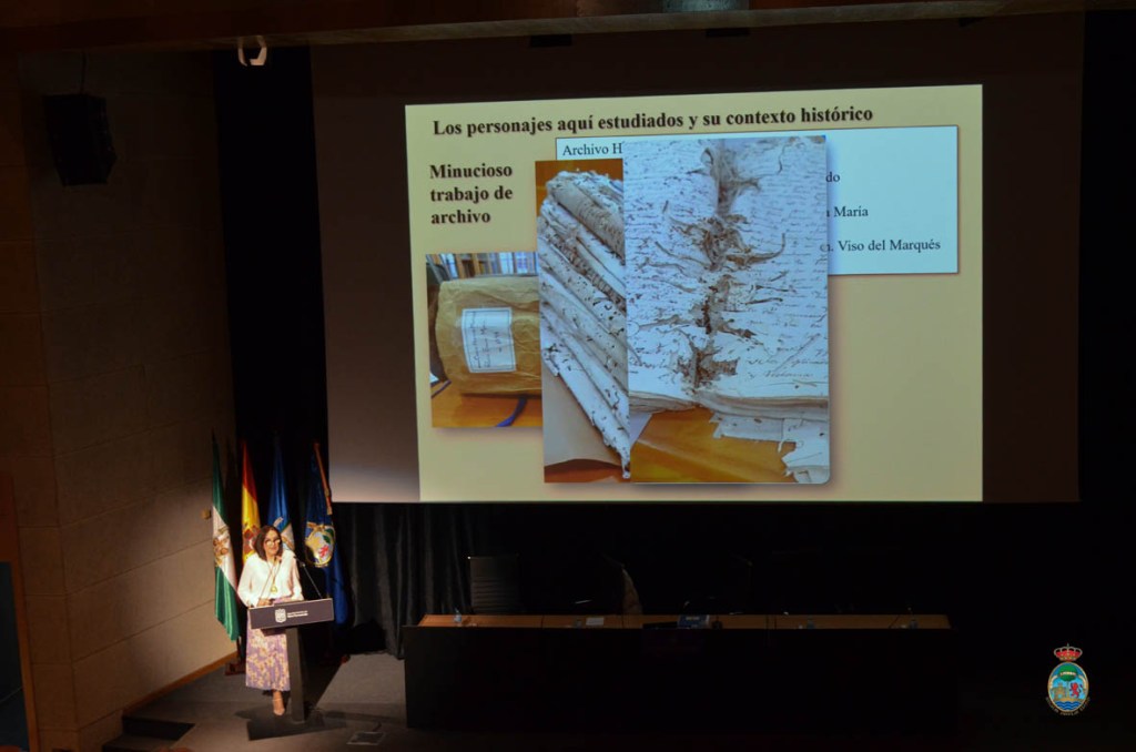 La académica comenzó su conferencia con una distendida nota de humor. «Ustedes pensarán que de nuevo estoy aquí hablando del molino del Zaporito, pero les prometo que los datos que aportaré hoy son nuevos porque van a venir cosas nuevas», aseveró. Y tras incidir en los primeros minutos en la necesidad de desterrar para siempre lo que en los años 70 del pasado siglo se difundió erróneamente como fue la idea de que el vocablo Saporito es una derivación de San Hipólito en lugar de estar relacionado con el genovés Juan Domingo Saporito, constructor del caño en la finca de su propiedad en La Isla de León, la conferenciante expuso los hitos históricos relacionados con el Zaporito desde el año 1700 hasta su decadencia y la reciente rehabilitación, con especial atención a las actividades que se desempeñaban en la zona y el molino (la carpintería de ribera, botadura de barcos, los populares baños de mar entre finales del siglo XIX y principios del XX, etc.) y un compendio de nombres que fueron a desembocar en los que se especificaban en el título de la conferencia: Manuel Gaspar Molina Tirry, IV marqués de Ureña, y María Dolores Josefa Tirry Lacy, autora de un libro de uso particular con todo lujo de detalles de la vida cotidiana del molino de mareas, esposa de Gaspar de Molina y Zaldívar, III marqués de Ureña con el que se casó en 1766.