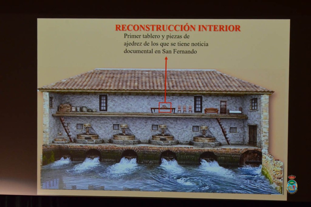 La reconstrucción a través de la inteligencia artificial de cómo pudo ser el interior del molino de mareas en plena actividad con la proyección de vídeos y datos curiosos como la constatación de que en él se hallaba el primer tablero y piezas de ajedrez de los que se tiene noticia documental en San Fernando fueron otros de los contenidos de una conferencia de suma relevancia para la investigación de la historia de un enclave crucial de San Fernando.