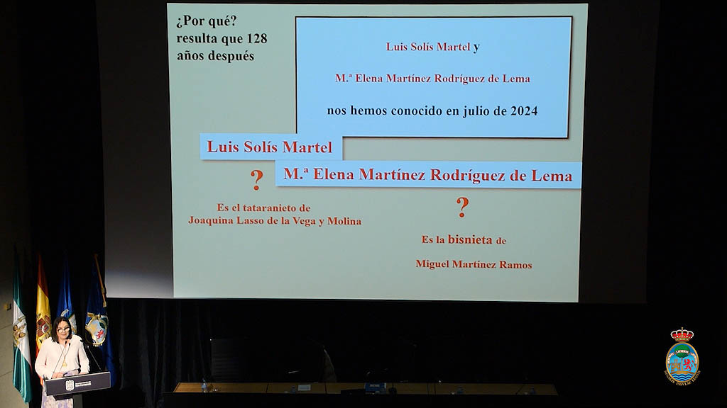 Y precisamente este libro fue una de las importantes revelaciones de Dña. María Elena Martínez Rodríguez de Lema en su conferencia. Emocionada al hacerlo, cabe destacar que, entre los nombres relacionados con el Zaporito y su molino a lo largo de tres siglos y que surgieron en los gráficos de su disertación, se encuentran los de antepasados de la historiadora isleña y académica de San Romualdo. Y momento culminante de tres décadas de investigación y varios libros publicados fue, como explicó la oradora, lo sucedido en julio de 2024, cuando durante la continua profundización investigativa llevada a cabo por ella le condujo a D. Luis Solís Martel, tataranieto de Joaquina Lasso de la Vega y Molina, nieta del IV marqués de Ureña que vendió el molino de mareas a D. Miguel Martínez Ramos en 1896… de quien Dña. María Elena Martínez es bisnieta. Es decir, y en palabras de la propia disertadora, unos caminos genealógicos y avatares, no exentos de fortuna pero también de énfasis investigativo, que condujeron a «algo cósmico» como fue el encuentro de ambos hace dos años y que se constituye en el origen de los nuevos hallazgos sobre el Zaporito, porque D. Luis Solís ha puesto a disposición de la disertadora este libro donde además se detalla la actividad económica de la familia en tiempos en los que las mujeres de hombres de negocio y provecho comenzaban a responsabilizarse de la gerencia de los negocios familiares cuando estos se veían obligados a viajar. María Dolores Josefa Tirry Lacy tituló el libro con el nombre de Consejos cristianos y políticos de una madre desengañada del mundo, al dedicarlo a una de sus hijas, quien a la edad de catorce años, se casó con su tío.