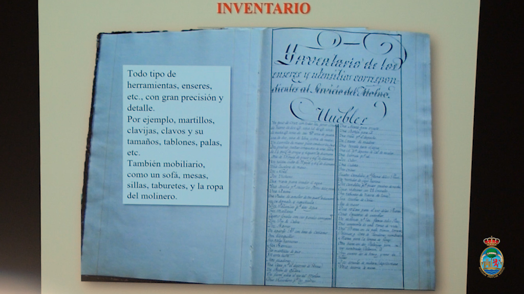 El resto de su disertación fue entonces un excelente manantial de datos extraídos de la publicación del marqués, desde el personal que atendía el molino hasta los arreglos que se le hacían, desde las piezas que se sustituían hasta los salarios, la compra de terrenos anexos, etc. Un compendio que solo es una parte, como la propia conferenciante matizó, de lo que contiene este volumen —porque no se descarta la existencia oculta de otros libros previos o continuadores de los años especificados en su portada— y que quizás podamos disfrutar de su contenido en el futuro. Por lo pronto, lo haremos de lo ya hallado.