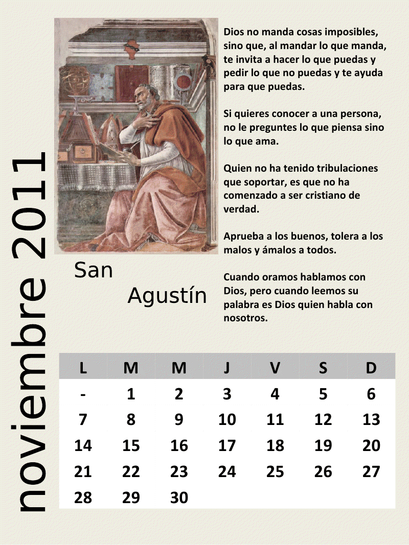 CALENDARIO 2011.NOVIEMBRE CON SAN AGUSTÍN.PADRE DE LA IGLESIA.