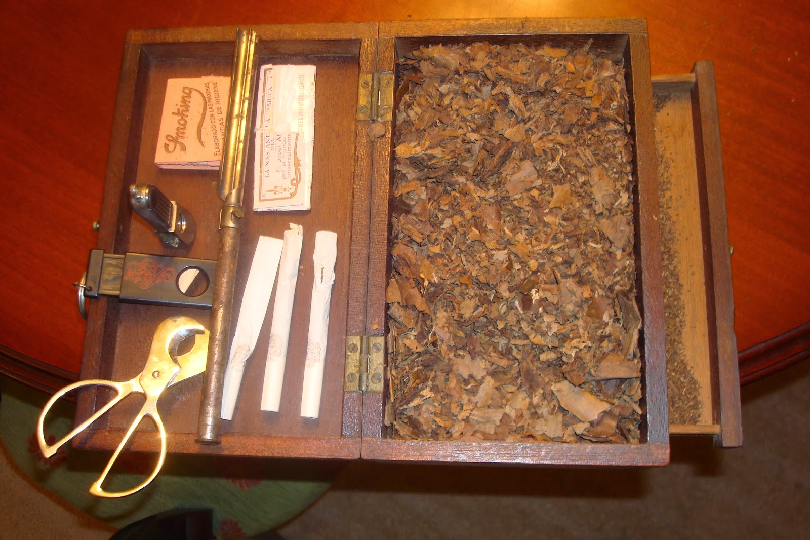 Caja de tabaco cubano para elaboración de cigarros, regalado por Janer a mi abuelo Manuel de Arnáiz D'Almeyda, eran grandes amigos.